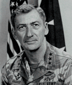 Lieutenant General David E. Grange, Jr., was inducted into the Ranger Hall of Fame for his dedication to duty and contributions to the U.S. Army as a Ranger qualified leader. Lieutenant General Grange was a veteran of 20 campaigns in three wars as an infantryman and served with distinction throughout in the U.S. Army. He enlisted in the Army in June of 1942, and served as a parachute infantryman in Europe, taking part in the Rome-Arno, Southern France, Rhineland, Ardennes, and Central Europe campaigns of World War II. Lieutenant General Grange was commissioned a Second Lieutenant of Infantry in 1950 and served in Korea with the 187th Airborne Infantry Regiment. He served his first tour of duty in Vietnam in 1963 as an Airborne/Ranger/infantry Advisor to the Department of Defense's Research and Development Field Unit.